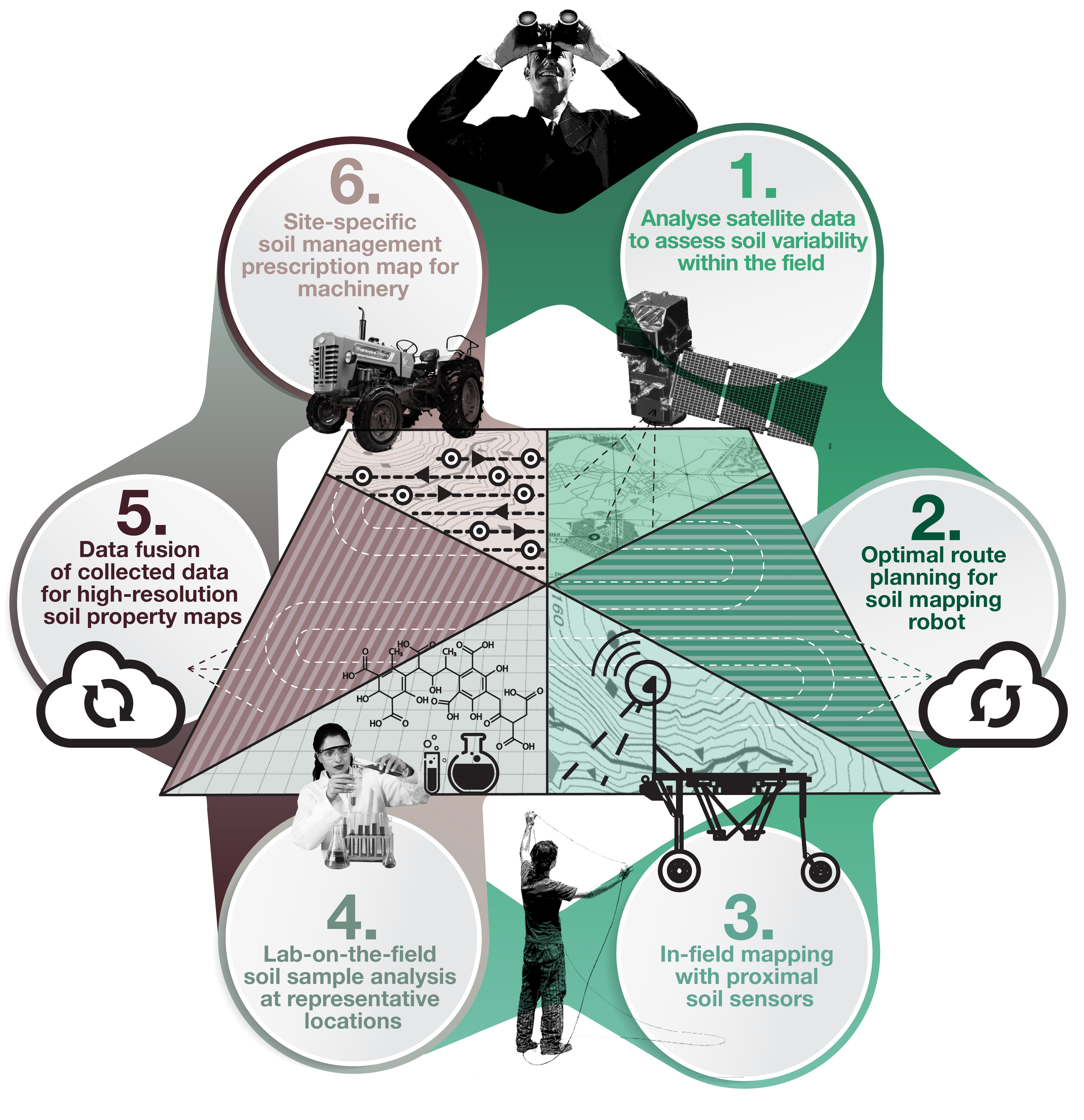 We are developing a smart soil mapping service. Combining multi-level, multi-technology approaches, SQAT offers high-resolution soil property maps and tailored solutions for farmers. Using autonomous robot-mounted sensors and innovative in situ analysis tools, the SQAT system enhances productivity while reducing costs.
