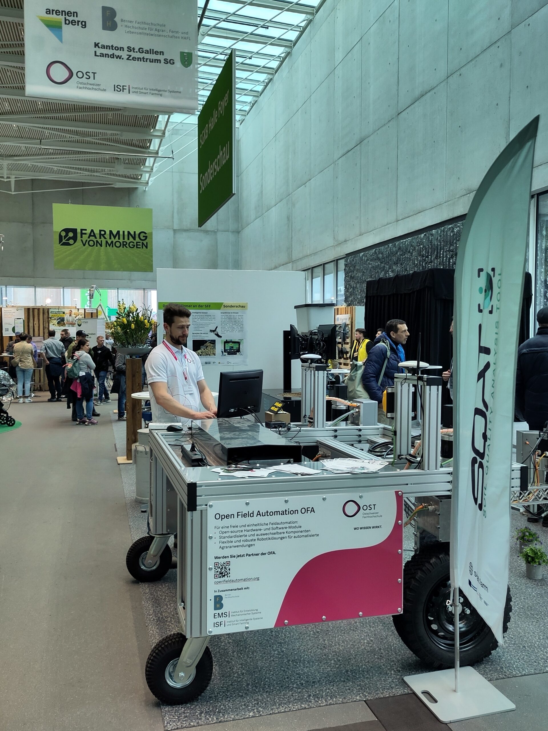 Our partners Luis Meier and Dominic Diedenhofen from the Institute for Intelligent Systems and Smart Farming (ISF) at OST – Ostschweizer Fachhochschule represented SQAT at the joint exhibition space.